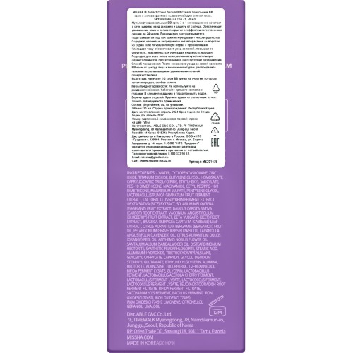 Мировая премьера – антивозрастной тональный BB-крем MISSHA M Perfect Cover Serum: самый продаваемый BB-крем в мире теперь с anti-age сывороткой MISSHA Time Revolution Night Repair. Создаёт тонкое, невесомое покрытие без «эффекта маски». Подстраивается под ваш естественный тон, скрывает несовершенства и придаёт коже лёгкое сияние. Обеспечивает стойкое покрытие без жирного блеска до 24 часов и обладает высоким фактором защиты от воздействия ультрафиолетовых лучей SPF 50/PA ++++. Не меняет оттенок в течение дня, не сереет, не темнеет, не скатывается. Благодаря нежной, тающей на коже текстуре BB крем MISSHA М Perfect Cover Serum легко наносится, равномерно растушёвывается, превосходно перекрывает тёмные круги под глазами и маскирует покраснения. Антивозрастная сыворотка Missha Time Revolution в составе тонального BB-крема эффективно работает с 10 признаками возрастных изменений кожи. Сокращаются мимические морщины, улучшается текстура кожи, повышается плотность и эластичность эпидермиса, активизируются процессы обновления клеток, устраняются следы усталости и воспалений, кожа увлажняется, подтягивается (лифтинг-эффект) и приобретает естественное сияние. Запатентованный концентрированный компонент сыворотки EXTREME BIOME™ – микс лизата бифидобактерий и 10 видов пробиотиков – повышает защитные функции эпидермиса и усиливает клеточный иммунитет кожи, поддерживает комфортный уровень увлажнения и ускоряет регенерацию тканей. Ниацинамид (витамин B3), аденозин и витамин E (токоферол) оказывают омолаживающее действие, стимулируют синтез коллагена и эластина в коже, уменьшают глубину мимических морщин и выраженность пигментных пятен. Богатейший комплекс растительных экстрактов и эфирных масел в составе корейского тонального BB-крема обеспечивает глубокое питание кожи витаминами, микроэлементами и жирными кислотами, снимает воспаление, покраснения, зуд и устраняет шелушения. Подходит для всех типов кожи, включая чувствительную и сухую.