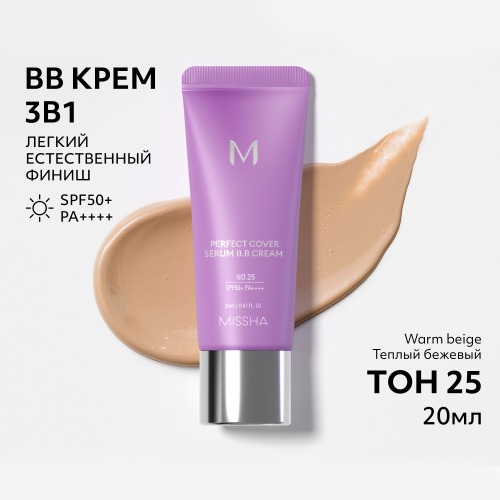 MISSHA М Perfect Cover Serum BB Cream Тональный BB крем с антивозрастной сывороткой для сияния кожи, SPF50 /PA тон 25, 20 мл