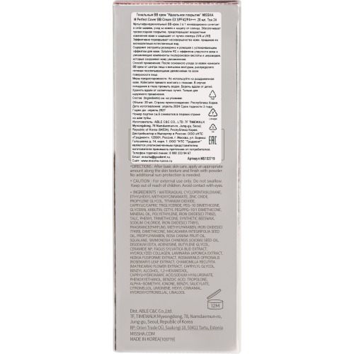 Тональный BB-крем MISSHA (Миша) – самый продаваемый BB-крем в мире. Он превосходно справляется с тремя базовыми функциями BB-средств (Beauty balm, бальзам красоты) – идеальный макияж, инновационный уход за кожей и высокая степень защиты от солнца. С первых дней BB-крем MISSHA получил высокую оценку профессиональных визажистов по всему миру. BB-крем MISSHA M Perfect Cover создаёт невесомое матовое покрытие без «эффекта маски». Подстраивается под Ваш естественный тон кожи, скрывая несовершенства и заметно улучшая цвет лица. Обеспечивает стойкое покрытие без жирного блеска до 30 часов. Не меняет оттенок в течение дня, не сереет, не темнеет, не скатывается. Благодаря мягкой кремовой текстуре BB крем MISSHA М Perfect Cover легко и быстро наносится, равномерно растушёвывается. Идеально перекрывает тёмные круги под глазами, маскирует покраснения и заметно осветляет пигментные пятна. Гиалуроновая кислота и керамиды, входящие в состав BB-крема, поддерживают гидролипидный баланс кожи, насыщая её влагой и поддерживая комфортное увлажнение в течение всего дня. Растительный комплекс Gatuline RC (экстракт буковых почек) обладает выраженным омолаживающим действием: увлажняет кожу, защищает от преждевременного старения, укрепляет структуру эпидермиса и уменьшает глубину мимических морщин. Экстракты розмарина и ромашки смягчают кожу, оказывают успокаивающее, противовоспалительное и антиоксидантное действие. Тональный BB-крем MISSHA M подходит для всех типов кожи, в том числе для чувствительной области вокруг глаз. Эффективно защищает от вредного воздействия солнечных лучей спектра UVA и UVB, фактор защиты SPF 42/PA +++. Тон 23. Объем 20 мл. Тональный BB-крем MISSHA M Perfect Cover – идеальное покрытие для Вашей кожи: здоровый цвет, свежесть и сияние на весь день!