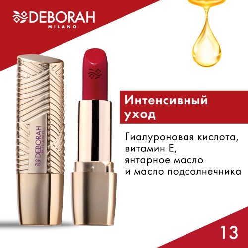 Deborah Milano DEBORAH Помада для губ ROSSETTO MILANO RED, тон: 13 дерзкий красный, 4,2 г