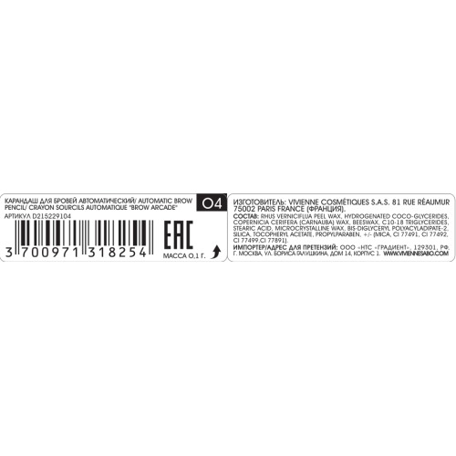 Vivienne Sabo Карандаш для бровей автоматический/ Automatic brow pencil/Crayon sourcils automatique Brow Arcade тон/shade 04