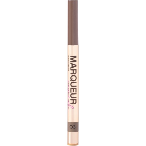 Маркер Marqueur Superb от Vivienne Sabó для насыщенных густых бровей. Он рисует естественные линии благодаря тонкому фетровому аппликатору — вы легко заполните пустоты между волосками и создадите эффект микроблейдинга. Невесомая текстура быстро высыхает, насыщенный цвет стойко держится в течение всего дня, элегантный дизайн корпуса влюбляет в себя с первого взгляда. Marqueur Superb доступен в четырех натуральных оттенках: коричневом холодном, светло-коричневом холодном, светло-коричневом для блондинок, темно-коричневом для брюнеток. Веганская формула, средство не тестируется на животных.