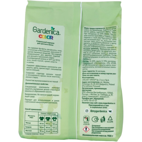 GARDENICA Стиральный порошок для цветного белья, 900 г