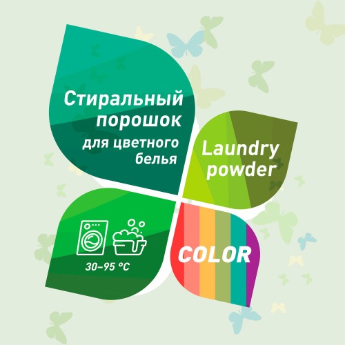 Не содержит фосфаты, фосфонаты, хлор, оптические отбеливатели, красители и прочие токсичные вещества. Без отдушек. Предназначен для цветных изделий для ручной и машинной стирки (температурный режим от 30°С до 95°С) всех типов тканей, кроме шерсти и шелка. Содержит эффективные компоненты для защиты цвета,препятствует смешиванию красок (линьке) Сохраняет структуру волокон тканей и насыщенность красок после многочисленных стирок. Полностью выполаскивается из тканей Дополнительные свойства : Специальные компоненты помогают защитить внутренние детали стиральной машины от образования накипи. Биоразлагаем. Не наносит ущерб окружающей среде. Подходит для использования в домах с автономной канализацией (септиком).