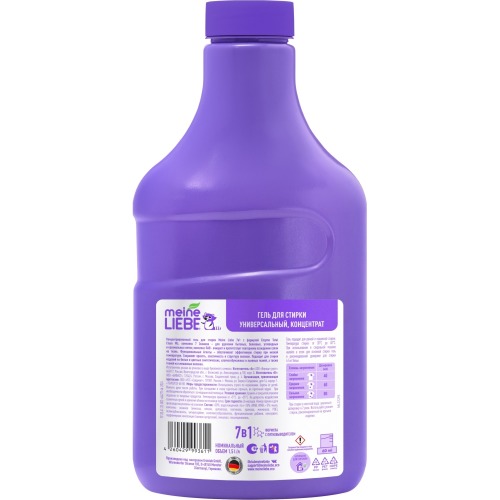 компонентов для стирки высшей категории: - комплекс 7 Энзимов - для удаления бытовых, белковых, углеводных и крахмальных пятен - комплекс ПАВ очищает и препятствует повторному осаждению грязи на ткань - Функциональные Агенты обеспечивает эффективную стирку даже в прохладной воде и на коротких циклах стирки Подходит для стирки изделий из белых и цветных синтетических, хлопчатобумажных и льняных тканей, а также тканей из смешанных волокон. Уникальный флакон эргономичен, а эксклюзивный колпачок для дозирования позволяет легко и комфортно пользоваться средством. Бытовая химия Meine Liebe безопасна для домов с автономными канализациями (септиками). Состав и упаковка средств биоразлагаемые, не содержат хлора, фосфатов, фосфонатов не загрязняют окружающую среду и полностью соответствуют ЭКО-стандартам. Все средства Meine Liebe изготовлены по уникальной формуле под контроль качества компании Grunlab (Германия), что гарантирует их надежность и эффективность.