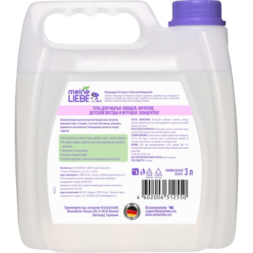 MEINE LIEBE Гель для мытья овощей, фруктов, детской посуды и игрушек,концентрат, 3 л канистра