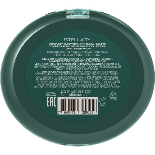 Stellary Компактная пудра для лица /Matte compact powder Serpent collection тон 01